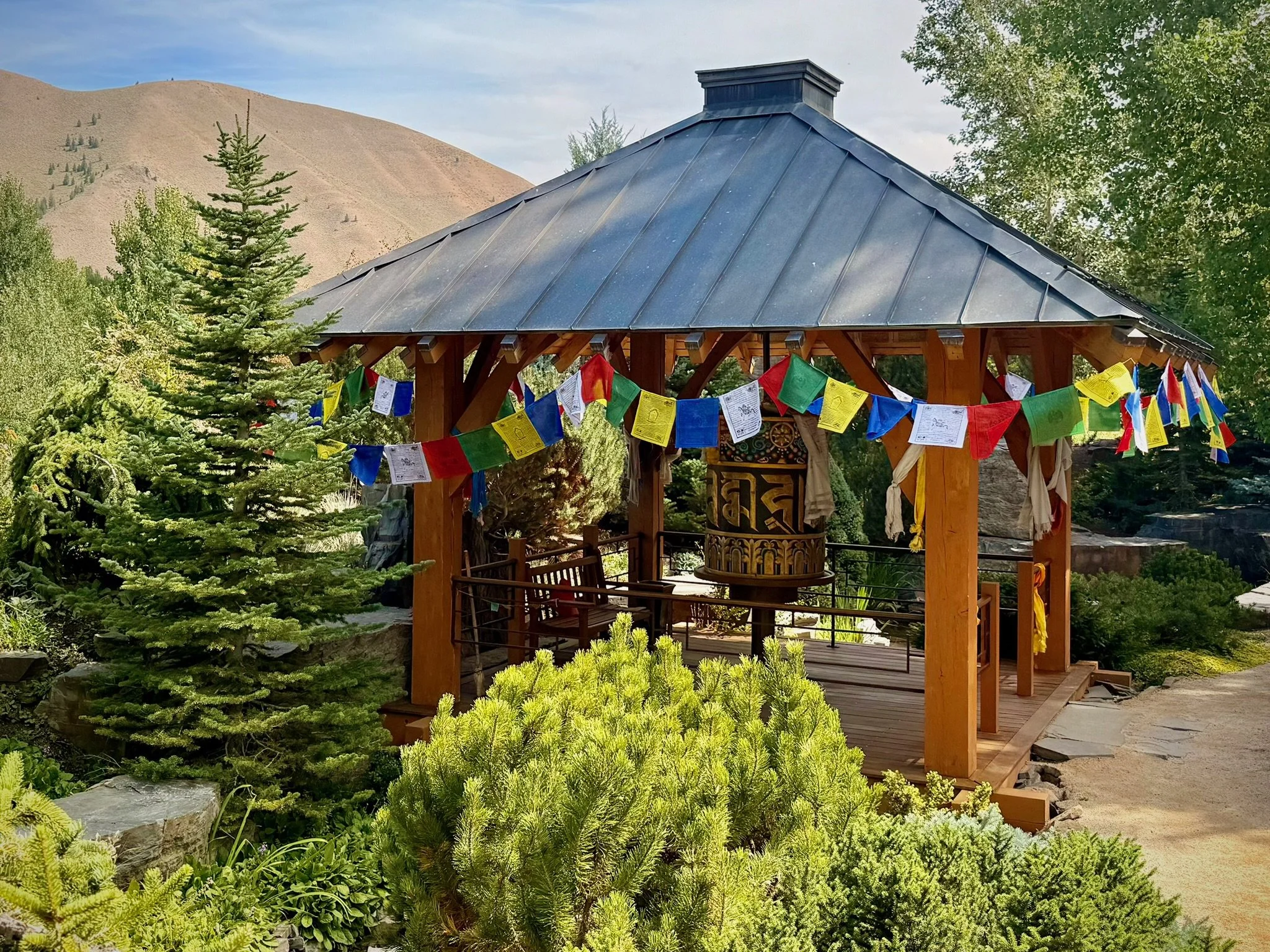 This Garden was created in September 2005 to honor the visit of the Dalai Lama to the Wood River Valley. A contemplative garden, it is a place of both inner and outer repose; it is a place where we abandon the chatter of our minds and the distractions of our lives to enter the serenity of nature and find the calm of a quiet mind.